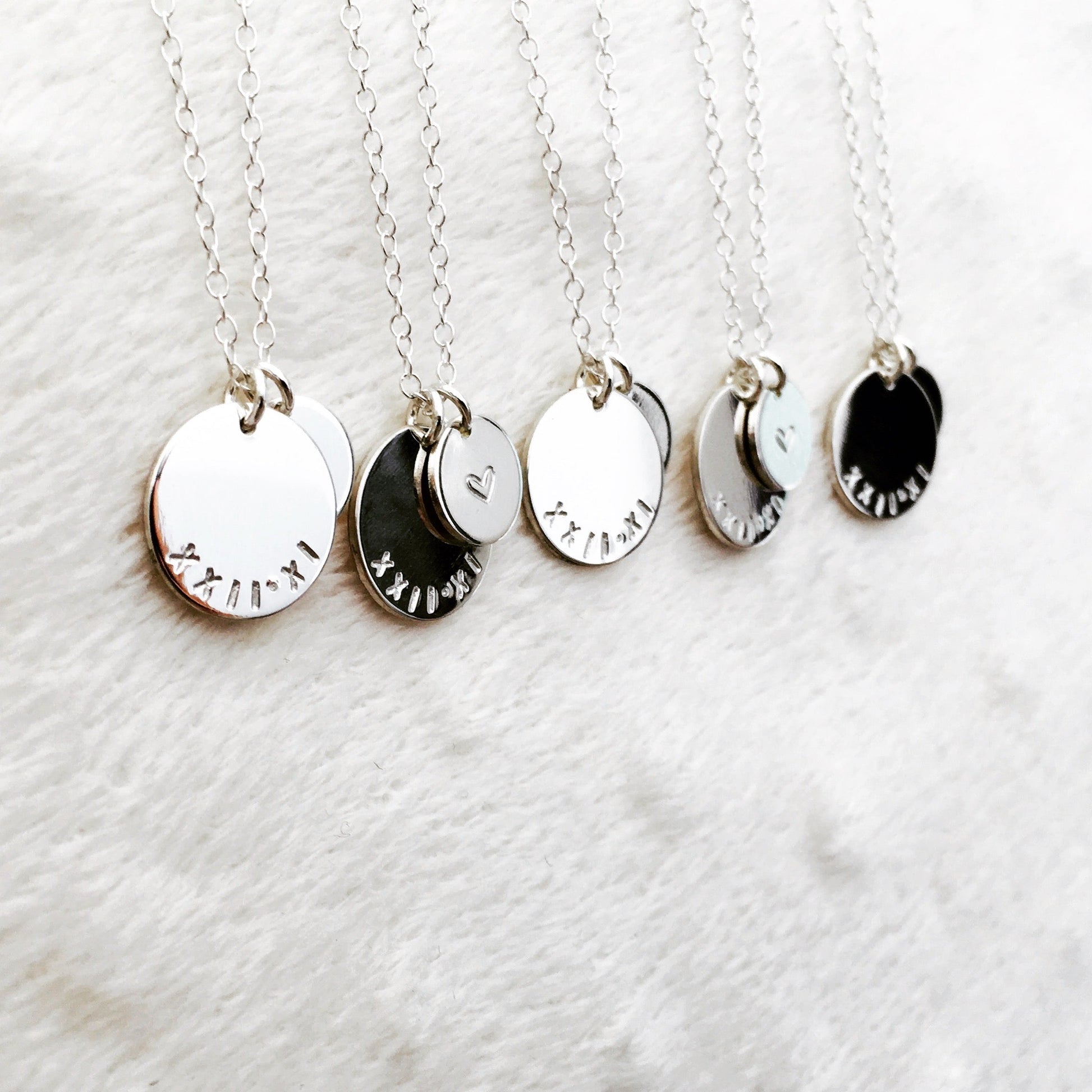 One of the original pieces, has been loved since the start. Our fave combination is a name or initials in Sweet font on the bigger pendant and a symbol on the small. But honestly, looks good with any combination–personalise her as you wish!