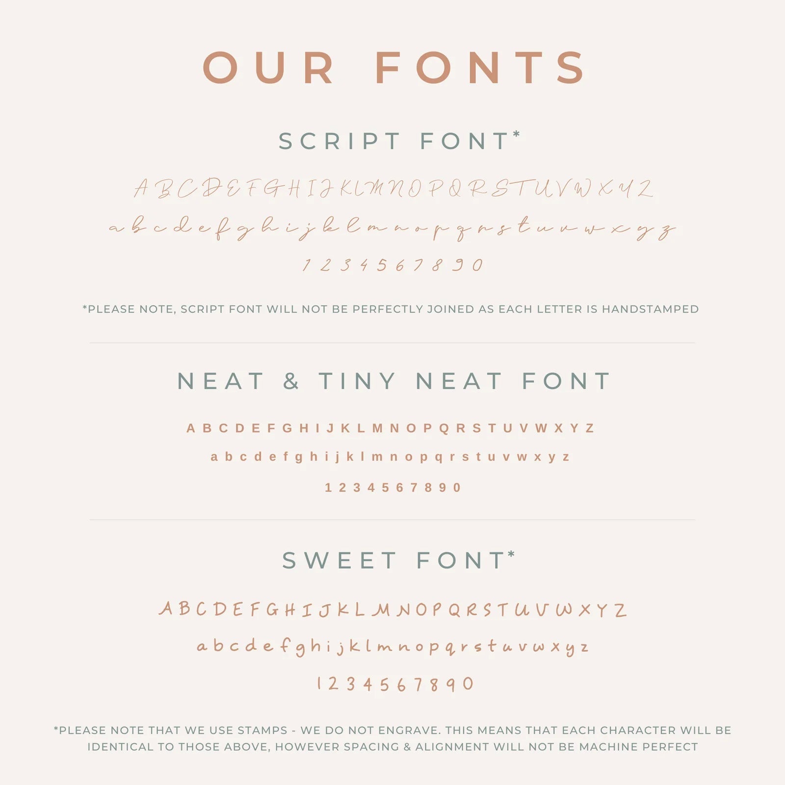 - Double check spelling & spacing as we stamp exactly as written